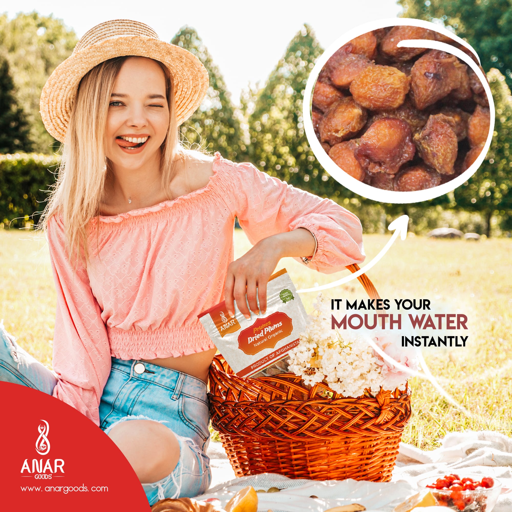 ANAR Prunes (Dried plums) 32oz (907g) | Organic, Pure & Natural | Additives Free | Sweet & Juicy | Best For Everyday Use, Cooking, Mixing & More | Vacuumed Packed | Resealable Stand-Alone Bag | From Afghanistan | Pack of 1